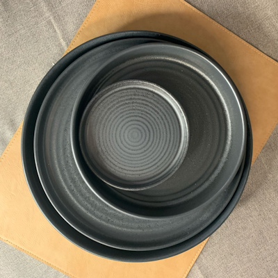 Dal design elegante e contemporaneo, il piatto Kaden hardstone reactive black è pensato per una mise en place di forte impatto visivo. La finitura Reactive Black, con le sue sfumature irregolari e naturali, rende ogni pezzo unico e valorizza l’estetica artigianale del servizio.