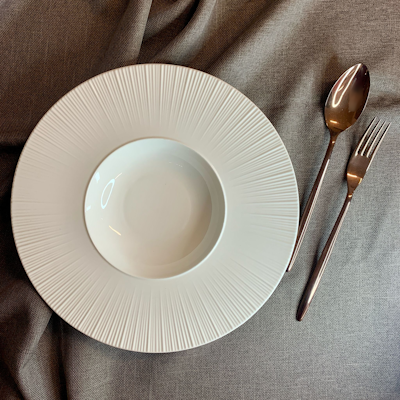 Il design essenziale e contemporaneo dato la righe che lo decorano, unito al colore neutro, si integra facilmente in qualsiasi stile di locale, rendendolo perfetto per ristoranti, hotel, fine dining, catering ed eventi di alto livello.