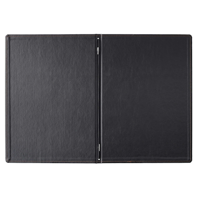 All’interno, l’elastico fermamenu permette di inserire facilmente buste porta menu, fogli stampati, cornicette o listelli bind, offrendo massima flessibilità nella gestione della carta.