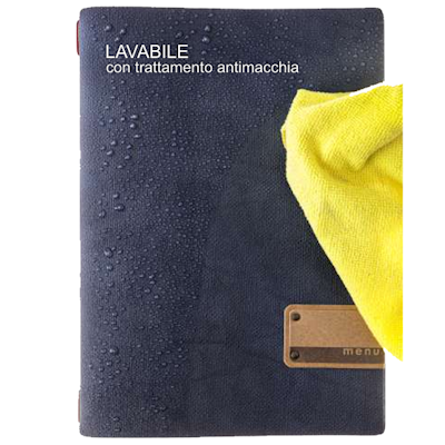 La copertina morbida in PVC antibatterico con texture effetto juta garantisce durata nel tempo, resistenza all’acqua e facilità di pulizia, caratteristiche fondamentali nel settore della ristorazione.