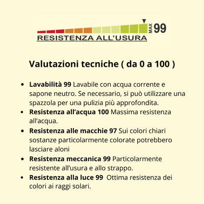 Grazie alla massima impermeabilità e alla certificazione antibatterica, è perfetto anche per utilizzo intensivo e ambienti esterni.