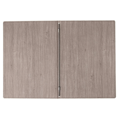 La copertina è realizzata in cartoncino rivestito con similpelle ecologica in PU, caratterizzata da una texture effetto legno che riproduce il fascino naturale del legno. Il colore noce, caldo e raffinato, si integra perfettamente con ambienti classici, rustici o contemporanei, contribuendo a creare un’atmosfera accogliente e professionale.