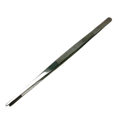 La pinza da cucina misura 40 cm, ideale per maneggiare cibi a distanza. La presa è ferma e sicura.