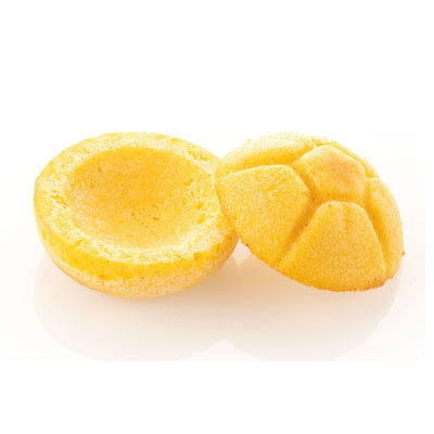La parte inferiore della michetta realizzata con questo stampo è dotata di una piccola cavità, ideale per essere riempita con preparazioni cremose o mousse.
