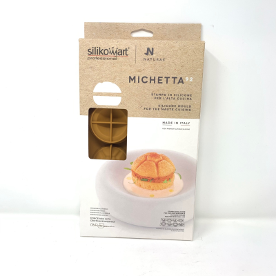 Lo stampo in silicone Michetta 92 permette di creare piccole preparazioni gastronomiche della forma di un panino tipo michetta o rosetta. Lo stampo Michetta 92 appartiene alla linea Naturae, ideata da Silikomart e dedicata ai professionisti della ristorazione: la forma del piccolo panino permette di creare piatti esclusivi come antipasti, entrée e portate principali donando un tocco di originalità in quanto lo stampo si può usare anche per preparazioni fredde.