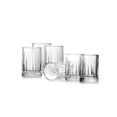 La lavorazione a scanalature crea un effetto sfaccettato che esalta la brillantezza del vetro e valorizza il colore delle bevande.